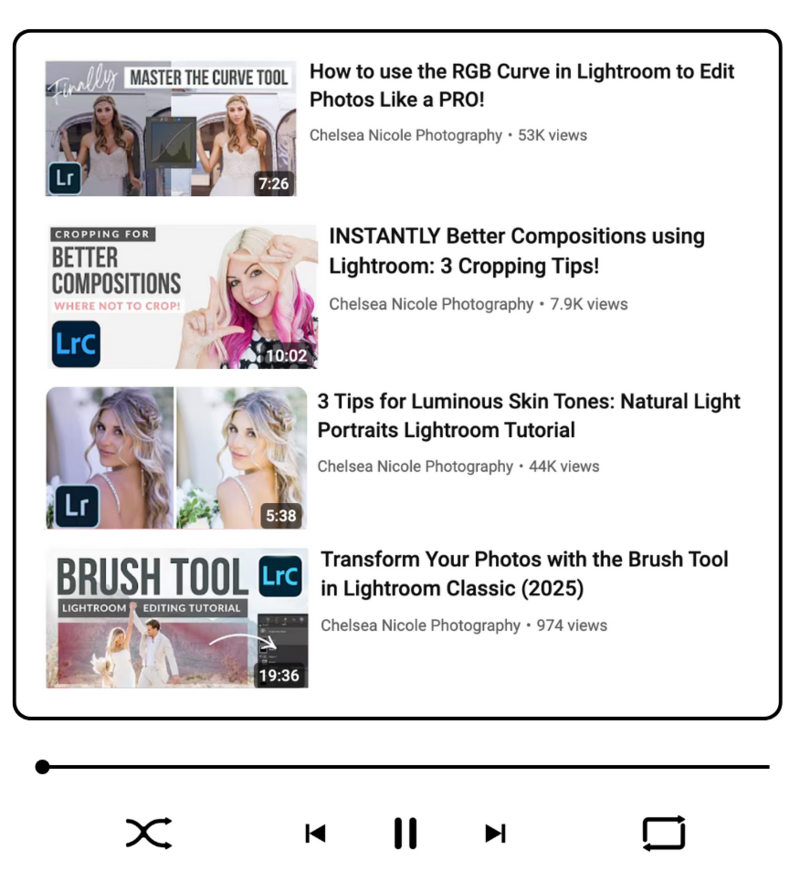 Check out the Edit Together Tuesday series on Youtube Channel for behind-the-scenes Lightroom editing tips and tutorials